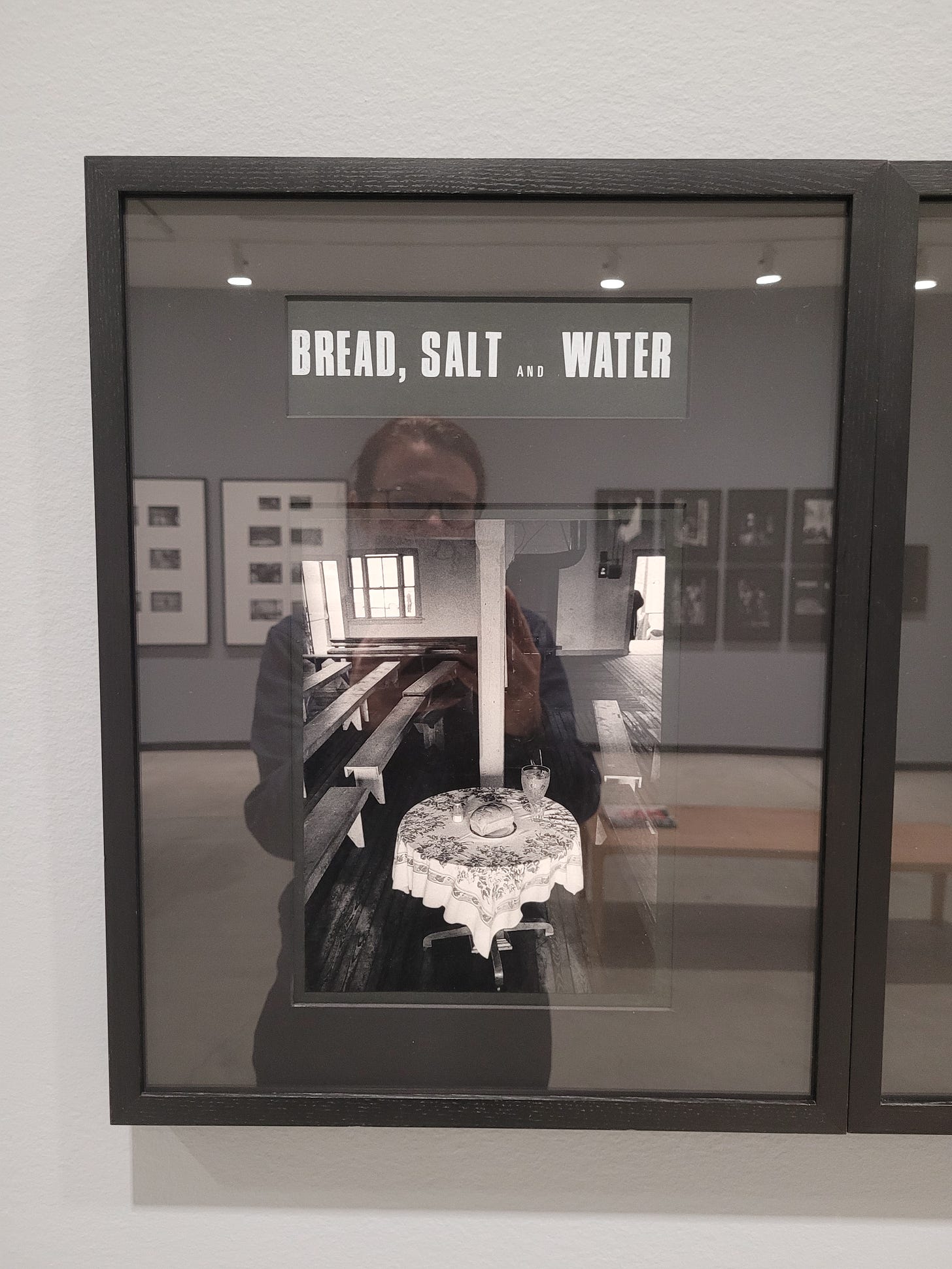 Tamio Wakayama photographed a sign for BREAD, SALT AND WATER and underneath it those three mercies are on a singular round table dressed in a white tablecloth in another white room with innumerable pews, or school benches, roughly arranged around the table and not a human in sight except me, in the reflection, hungry.